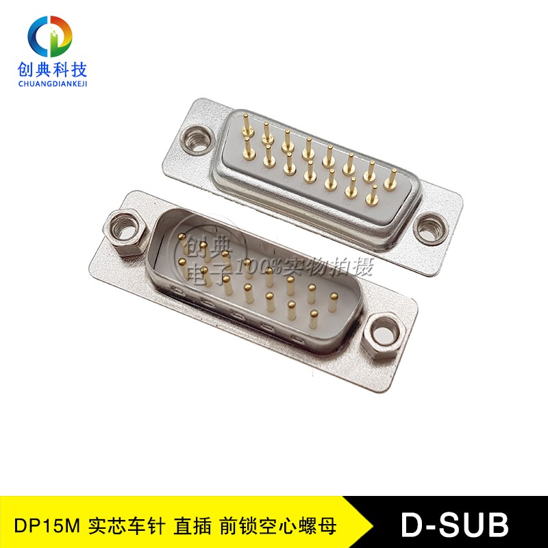 DB15公座D-SUB 15Pin 180度直插RS232/VGA实芯车针DP15M 光孔/前铆螺母/后铆螺母/铆6.0铜柱锁铁螺丝