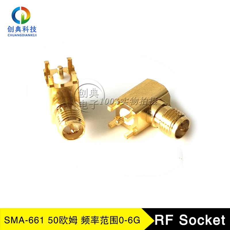 射频同轴镀金连接器SMA-661 板端50欧姆RP SMA母头公针频率范围0-6G