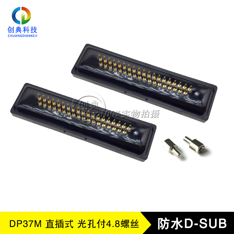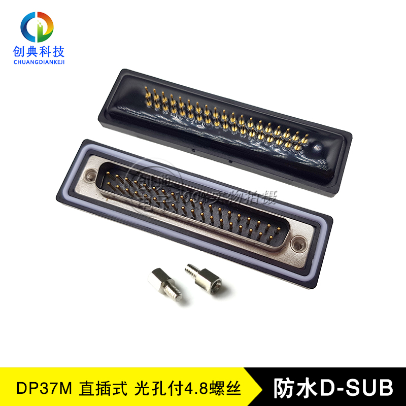 DB37公座37Pin防水D-SUB实芯全金车针VGA防水等级IP67 180度直插光孔型DP37M