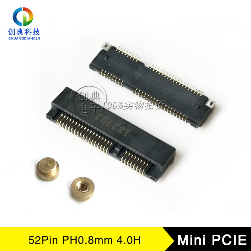 首页> Mini PCI-Express>Msata-52Pin-4.0H> Mini PCIE连接器 4.0H 卧式贴片SMT式 52Pin Msata座子 PCI-Express插槽及配套支撑铜柱