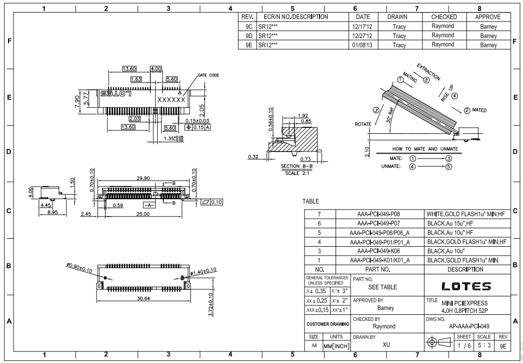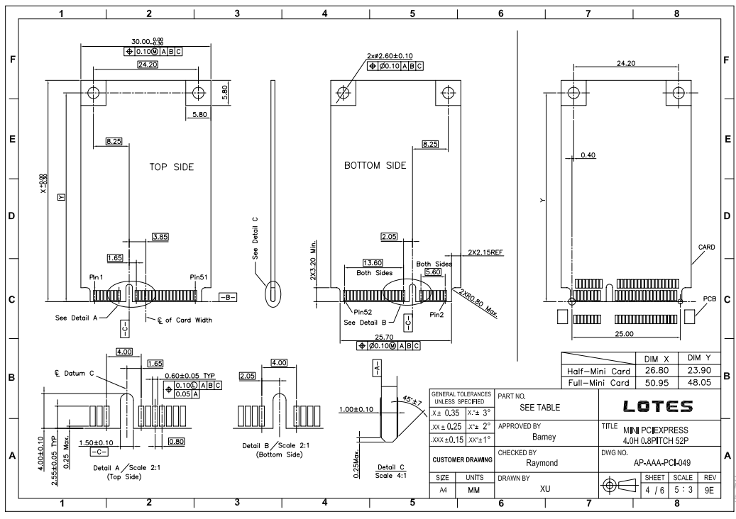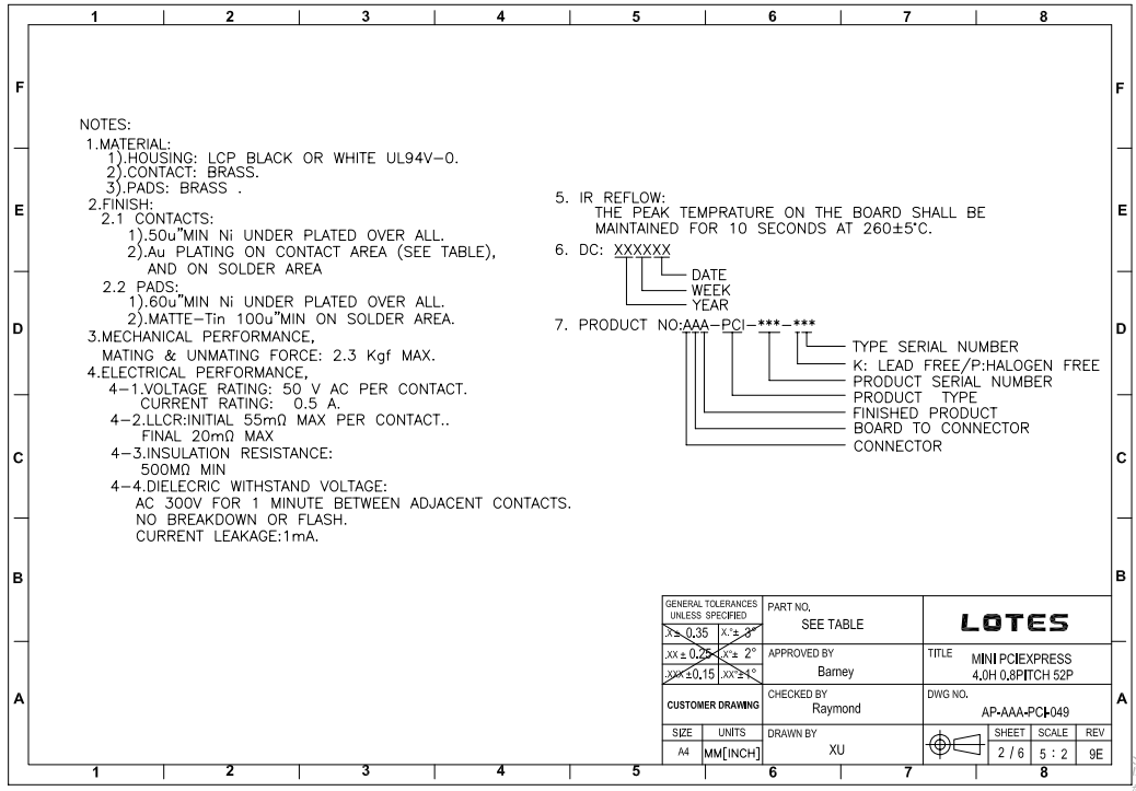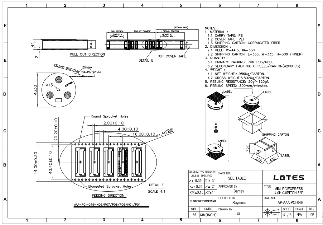 描述说明: LOTES得意:AAA-PCI-049-K01 SPQ:700PCS/Reel