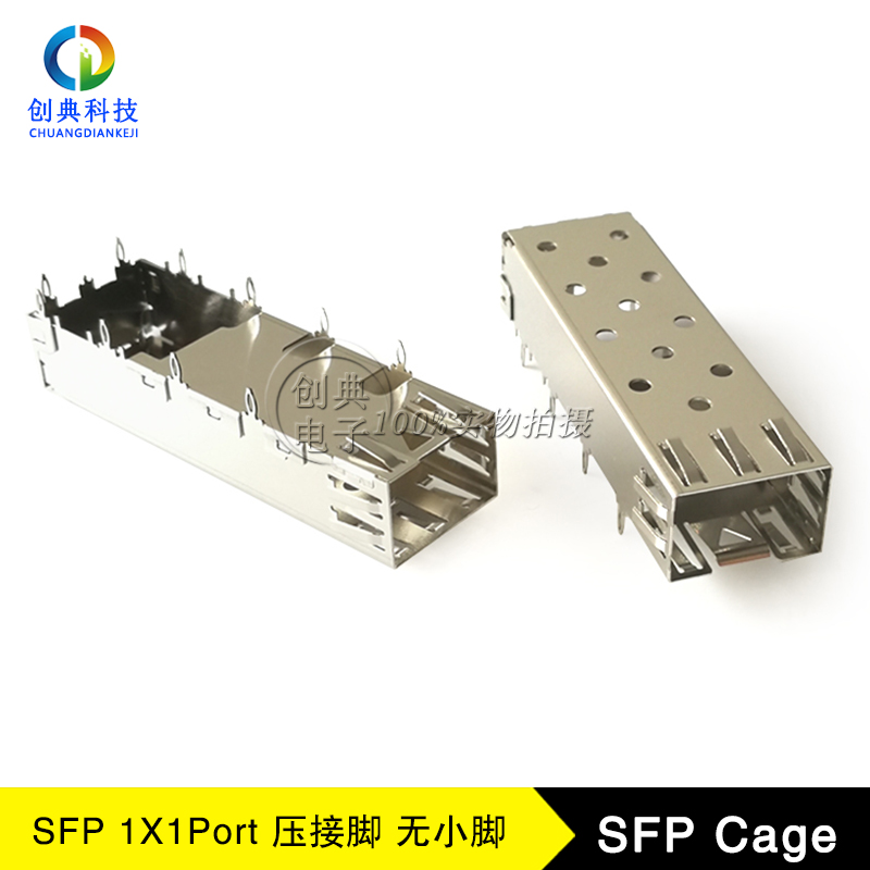 SFP千兆光笼子1X1Port鱼眼脚压接式无月牙小脚光模块接口SFP Cage光纤插槽屏蔽罩