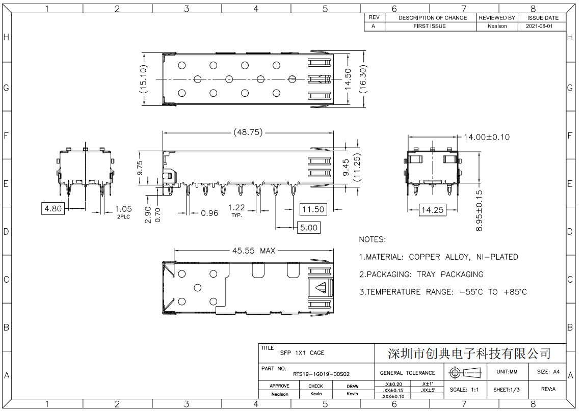 SFP-1*1Cage-压接无小脚:1.S.TC11P.4809.RT