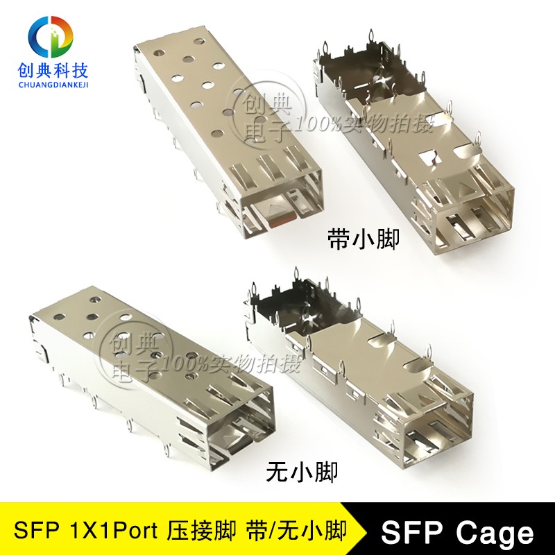SFP千兆光笼子1X1Port鱼眼脚压接式带小脚/无月牙小脚光模块接口SFP Cage光纤插槽屏蔽罩