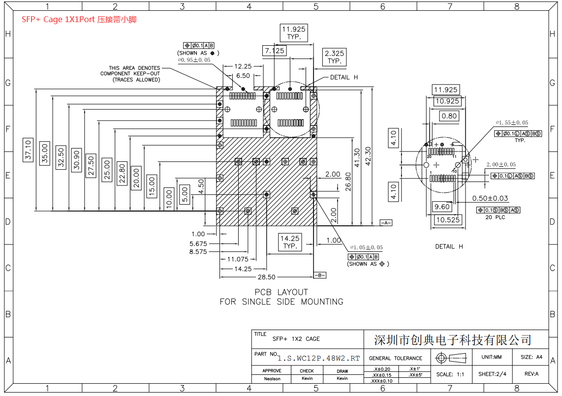 描述说明: SFP+ 1X2Cage-压接式-带小脚:1.S.WC12P.48W2.RT;SFP+ 1X2Cage-压接式-无小脚:1.S.WC12P.4802.RT;SFP+万兆连接器-20Pin-15u:1.S.WC20S.0GD0.RT
