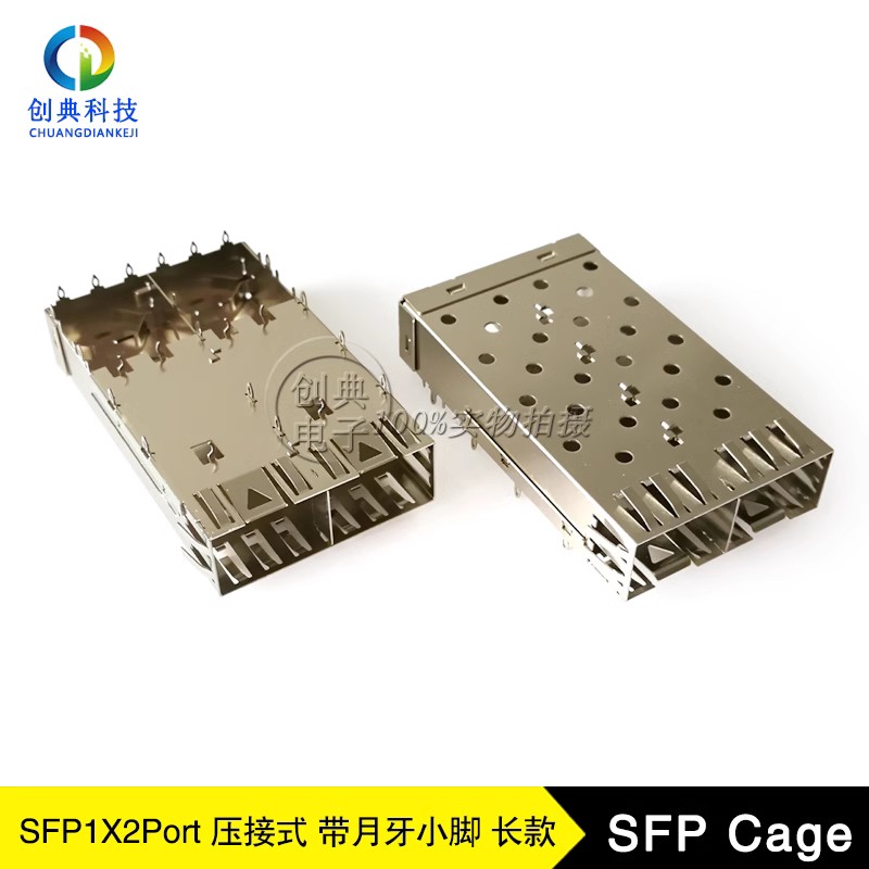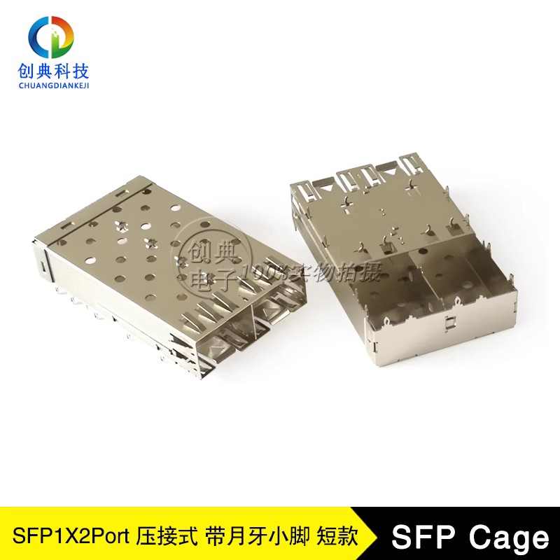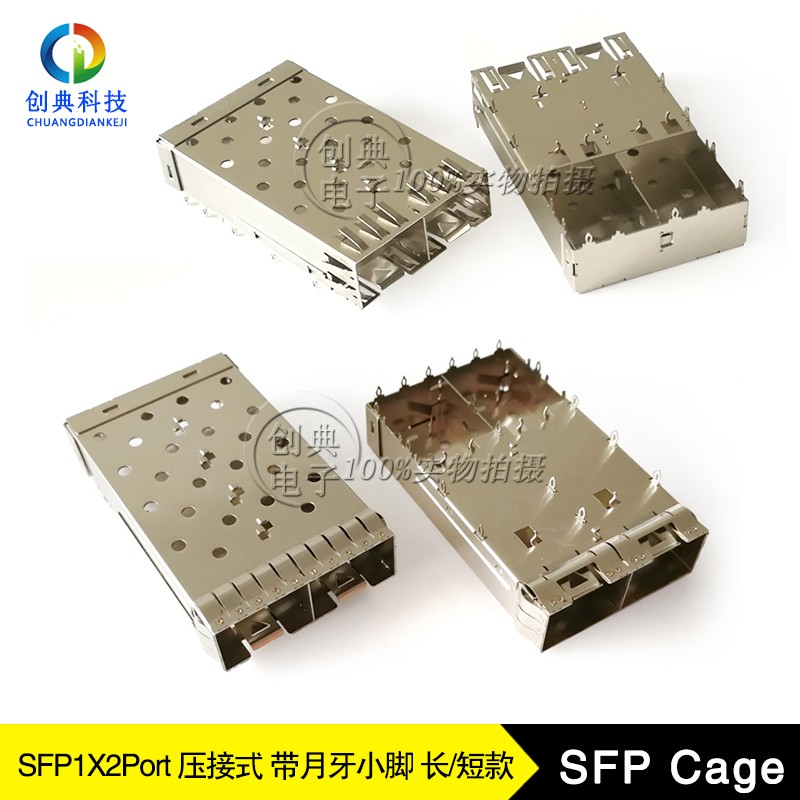 SFP千兆光笼子1X2Port鱼眼脚压接式光模块接口SFP Cage光纤插槽屏蔽罩-带月牙小脚长款&短款