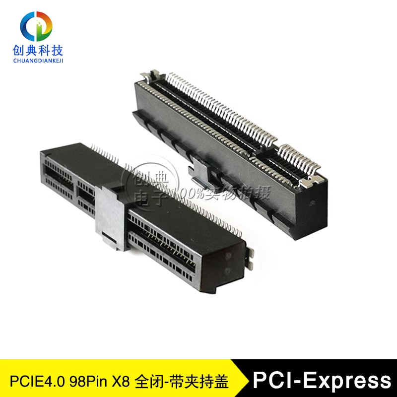 PCIE4.0显卡插槽98Pin(X8)立式全贴片SMT式PCIE内存卡槽有脚带定位柱PCI-Express金手指连接器 -全闭&单边开槽