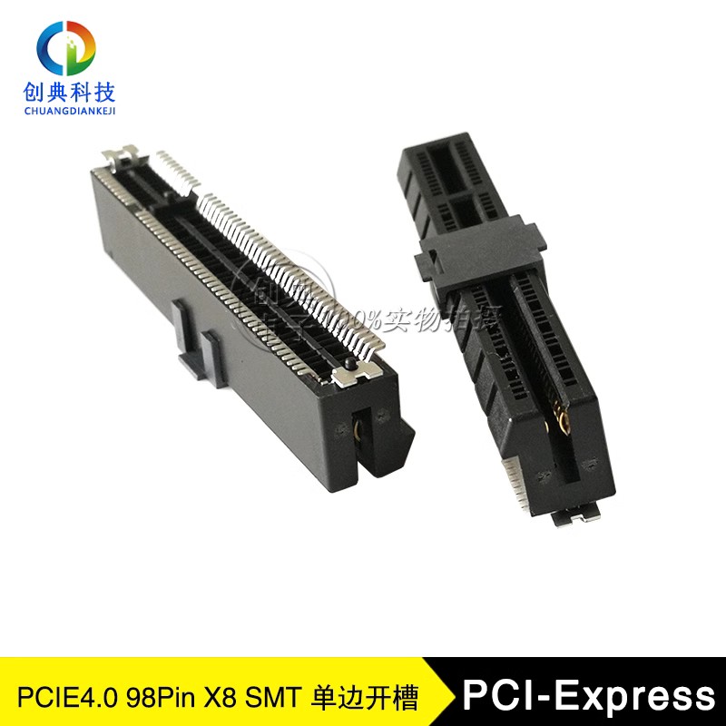 首页> PCIE4.0显卡插槽98Pin(X8)立式全贴片SMT式PCIE内存卡槽有脚带定位柱PCI-Express金手指连接器 -全闭&单边开槽