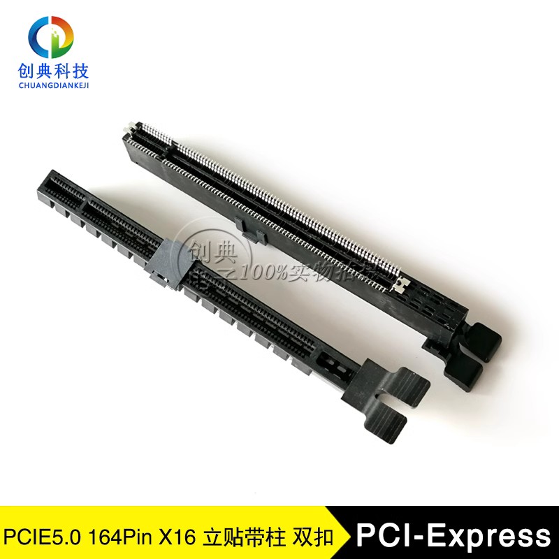 PCIE5.0显卡插槽164Pin(X16)立式180度全贴片SMT式有脚带柱带单边侧卡扣&双卡扣 PCI-Express金手指连接器