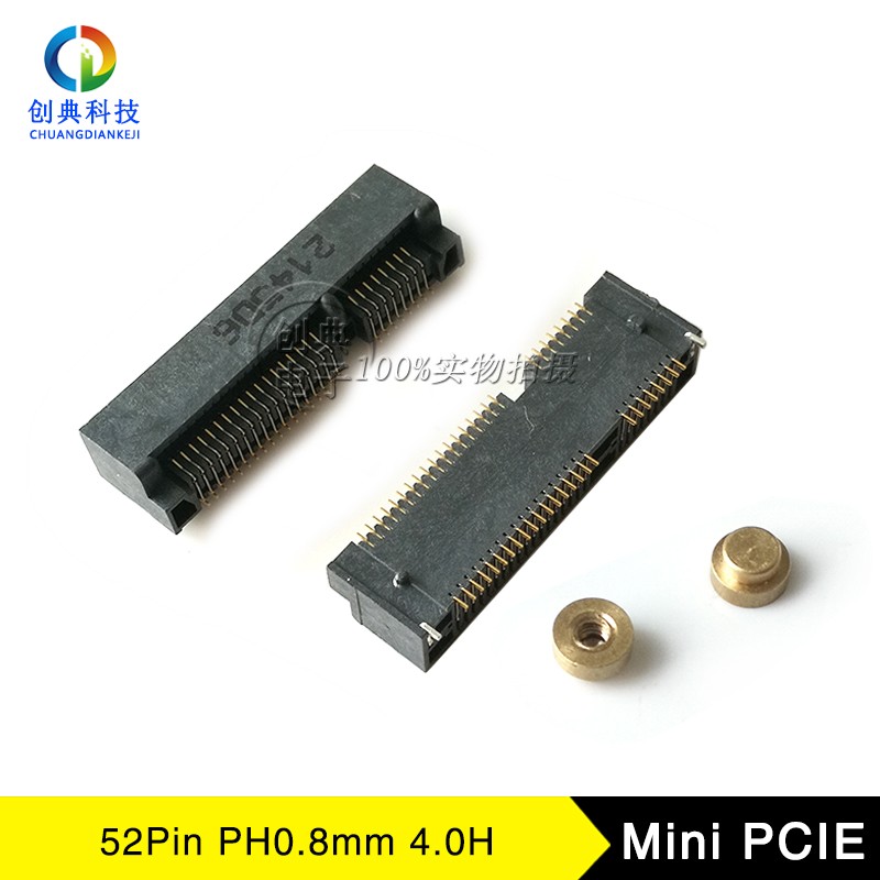 首页> Mini PCI-Express>Msata-52Pin-4.0H> Mini PCIE连接器 4.0H 卧式贴片SMT式 52Pin Msata座子 PCI-Express插槽及配套支撑铜柱