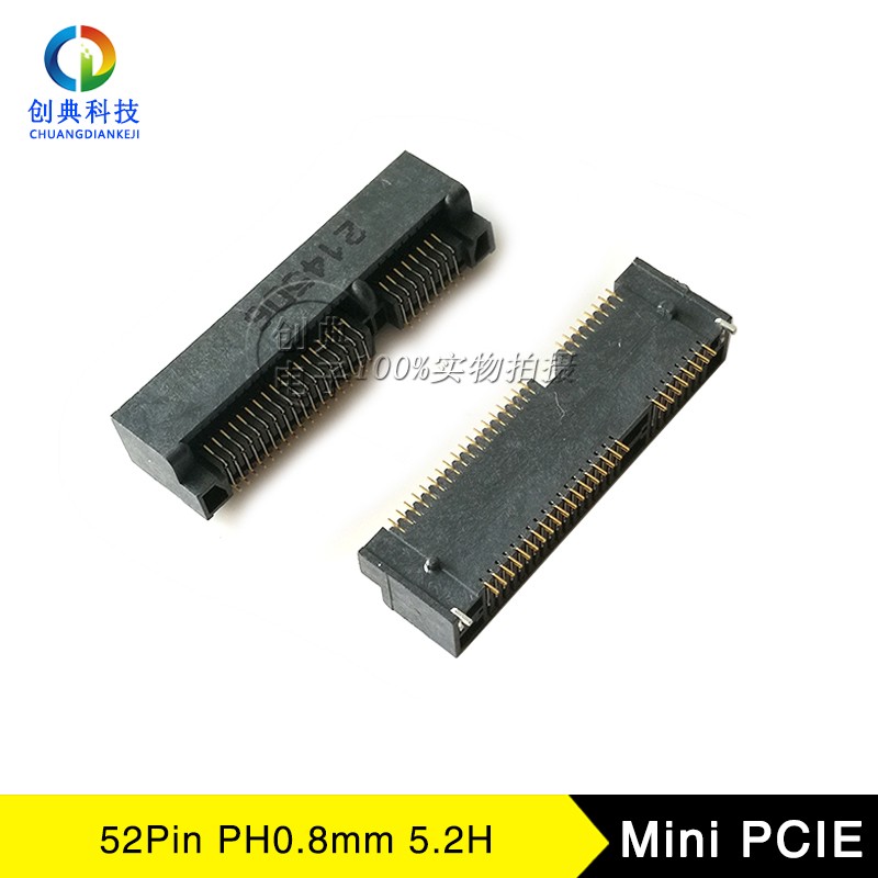首页> Mini PCI-Express>Msata-52Pin-5.2H> Mini PCIE连接器 5.2H 卧式贴片SMT式 52Pin Msata座子 PCI-Express插槽及配套支撑铜柱