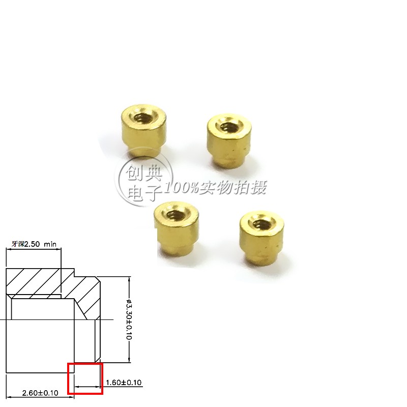 Msata表贴铜柱 M.2X4.5XL2.6 1.6X3.3支撑贴片螺柱盲孔 建议配套mini Pcie插座5.2H座子