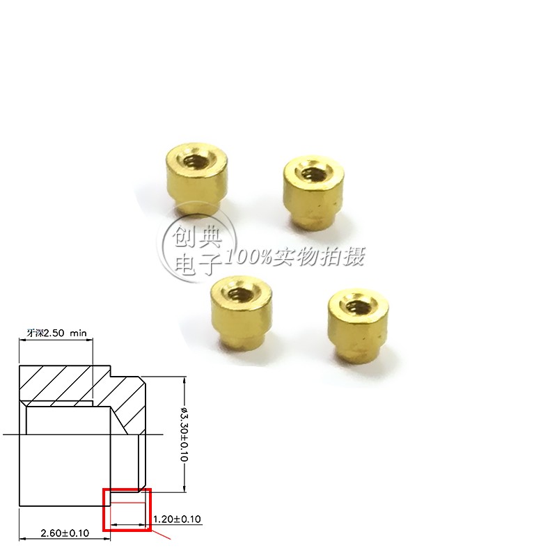 Msata表贴铜柱 M.2X4.5XL2.6 1.2X3.3支撑贴片螺柱盲孔 建议配套mini Pcie插座5.2H座子