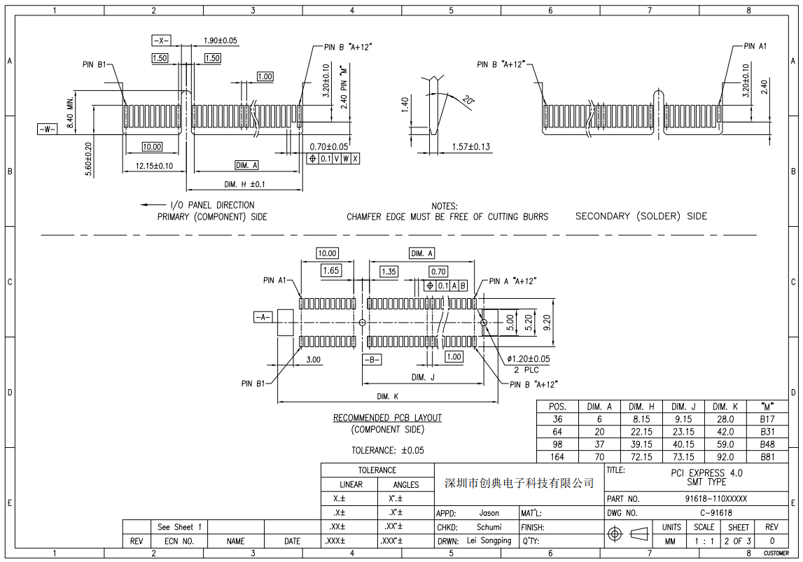 PCIE4.0显卡插槽36Pin(X1)64Pin(X4)98Pin(X8)164Pin(X16)立式全贴片SMT式PCIE内存卡槽有脚带定位柱PCI-Express金手指连接器 -单边开槽