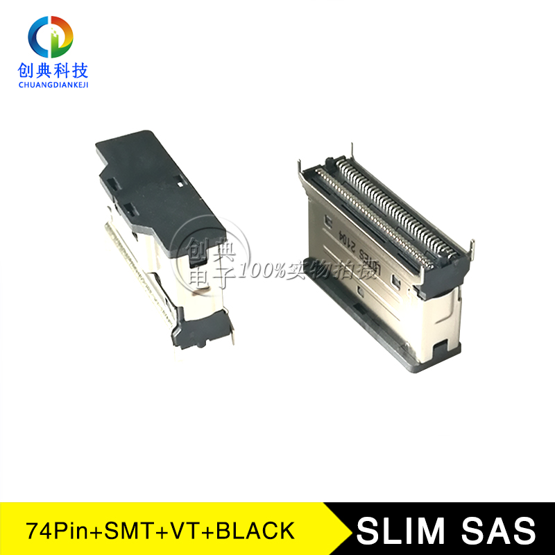 SFF-8654连接器SLIM SAS高速存储座子74Pin+SMT+VT+BLACK 4X Rec镀金30u卧式贴片SMT式