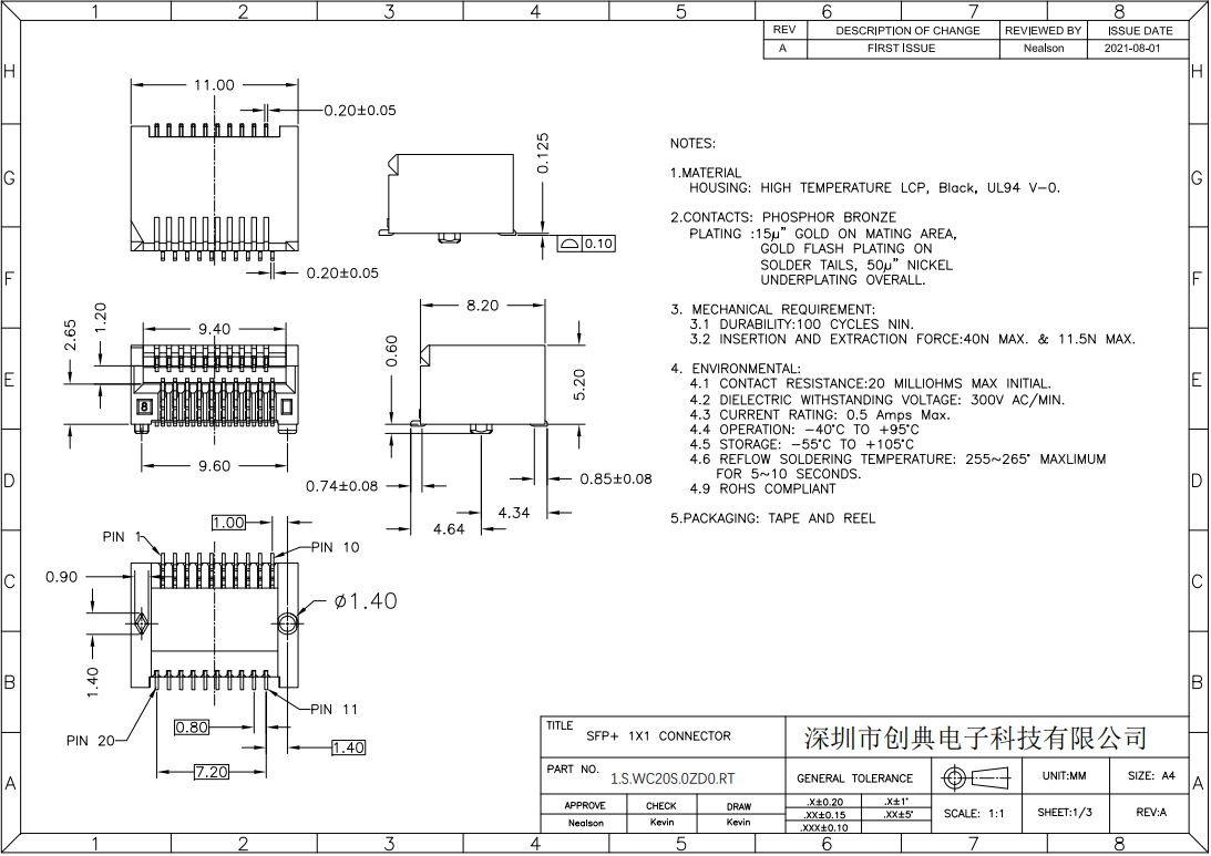 描述说明: 导光柱10.87H:1.S.TC11T.10D1.RT;导光柱13.57H:1.S.TC11T.13D1.RT;导光柱14.10H:1.S.TC11T.14D1.RT;SFP千兆连接器-20Pin-15u:1.S.WC20S.0GD0.RT