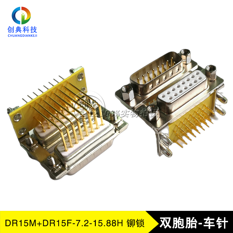 DR15公对DR15母 DB15M+DB15F双层D-SUB双胞胎VGA实芯车针铆金属支架带黄色塑胶挡板锁4.8/5.8铁螺丝-15.88H&19.05H